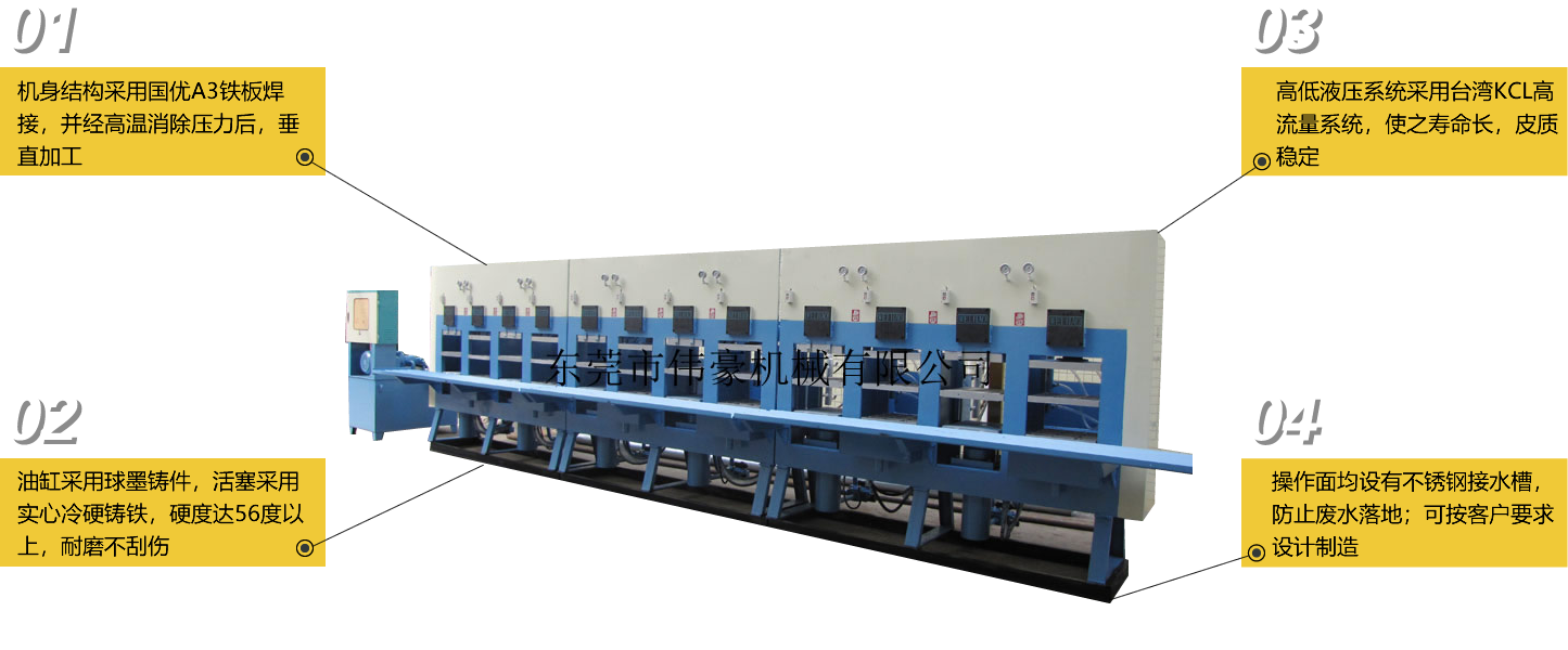 東莞市偉豪機械有限公司是一家從事各類標準和非標準油壓機的集設計、制造、銷售于一體的專業性機械制造企業。公司目前的主要產品有:橡膠大底油壓機、中底(MD)冷熱油壓機、四柱油壓機、框架式油壓機、EVA發泡機等,我司生產的機械適用于各類橡膠、鞋材、發泡等企業。外加生產銷售各種油壓配件,維修各種油壓機械。